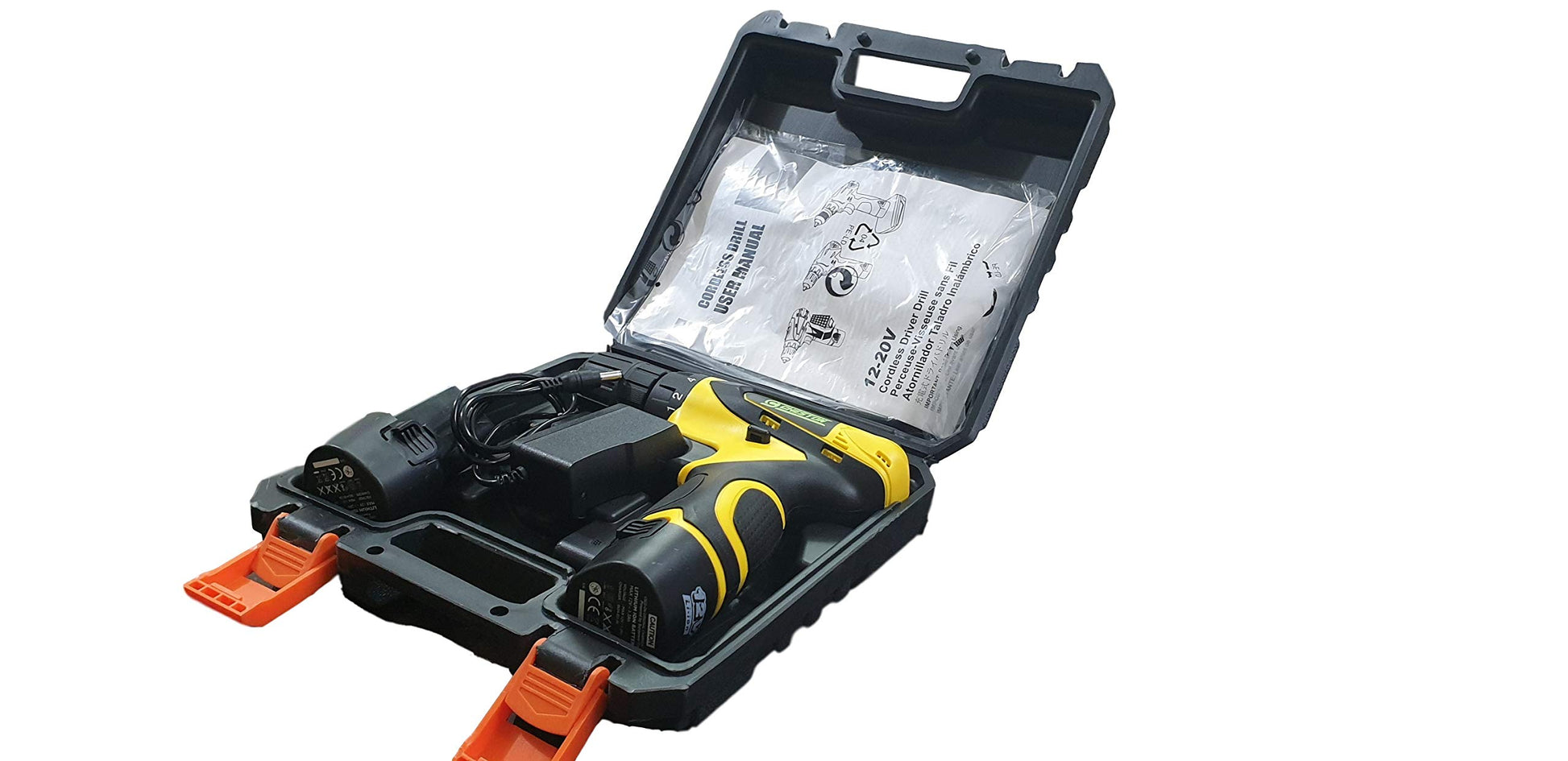 10 millimeters Dual Speed Keyless Chuck 12V Cordless Drill/Screwdriver with 2 Batteries, LED Torch Variable Speed and Torque Setting (19+1) - (28 L x 24 W x 7 H) - Yellow