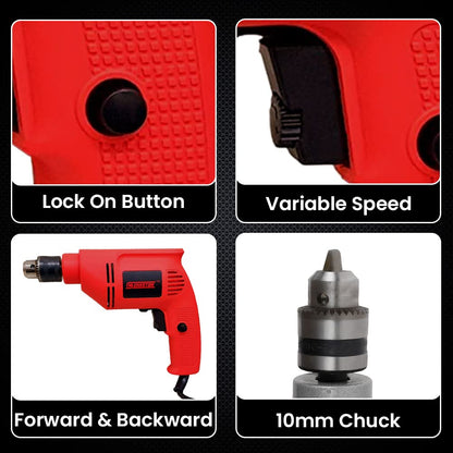 10mm Powerful Drill Machine Reversible Variable Speed for Wall, Metal, Wood Drilling (Bits Included in Select Variations. Chose Below) (ONLY Drill)