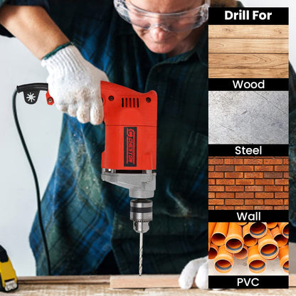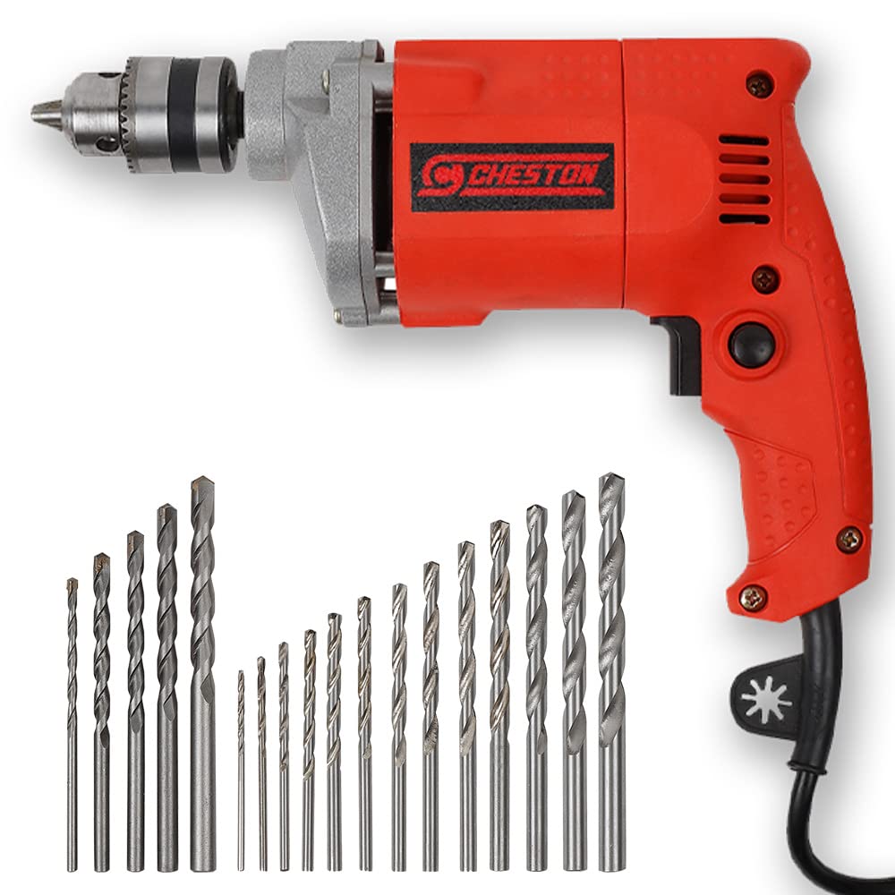Cheston 10mm Powerful Drill Machine Reversible Variable Speed for Wall, Metal, Wood Drilling (Bits Included in Select Variations. Chose Below) (5 PCS Wall BITS and 13 PCS HSS BITS Included)