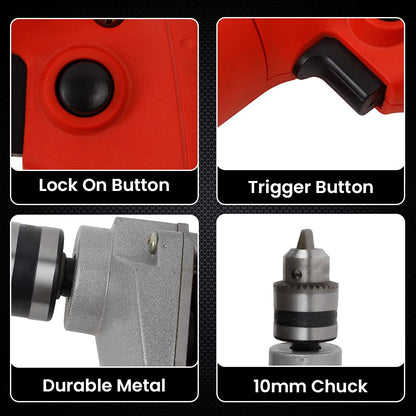 • Powerful Performance: With a robust 10mm capacity, this drill can effortlessly handle tough materials, including masonry, metal, and various types of wood.