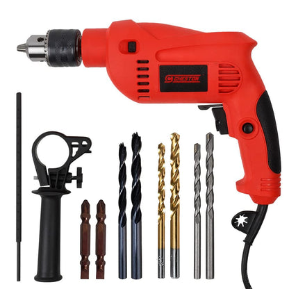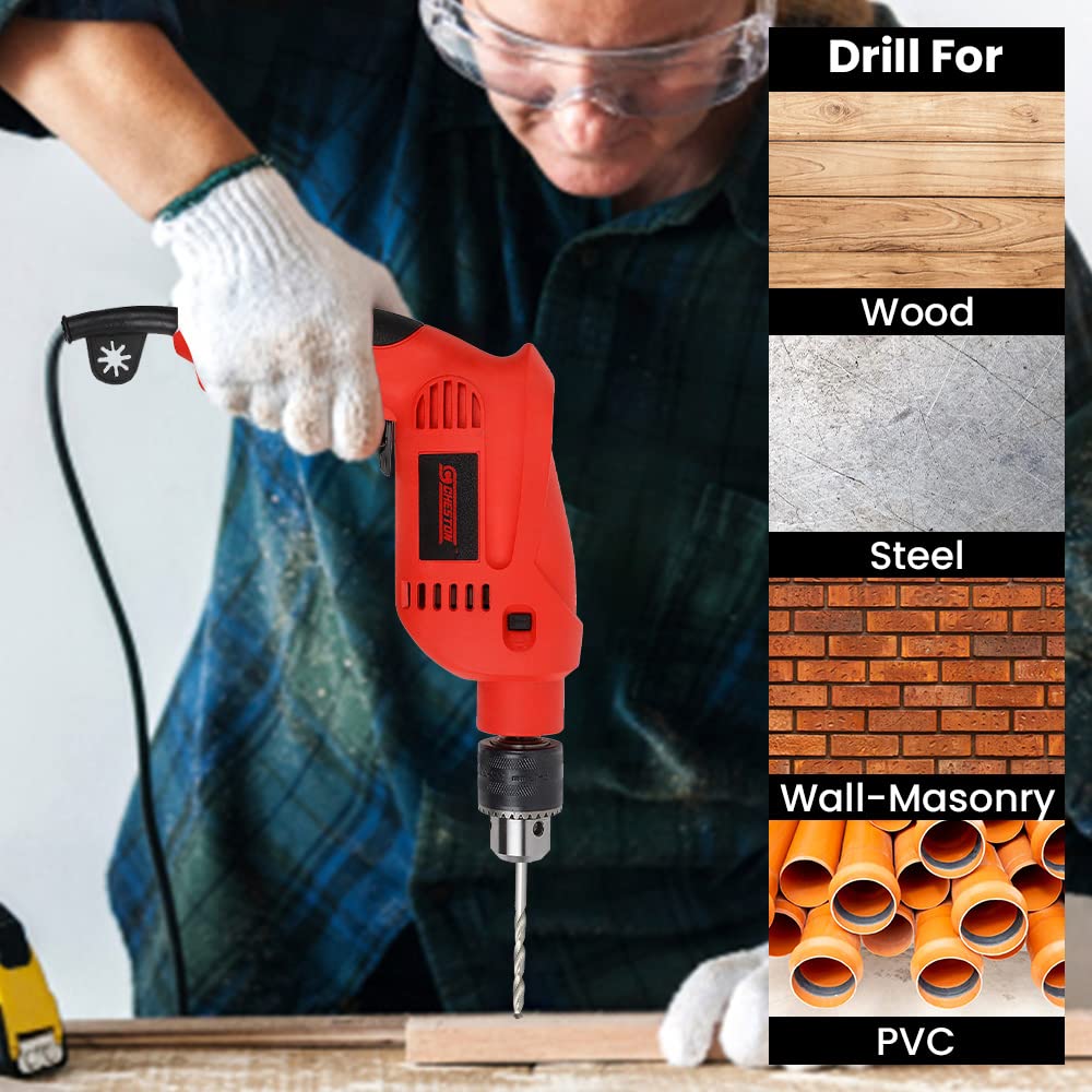 Cheston 13mm 650W Drill Machine for Home & Proffesional Use With Drill Bits for Wood Metal Wall & Screwdriver 2900RPM Powerful Electric Tool Kit Set with Copper Armature