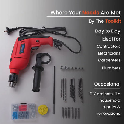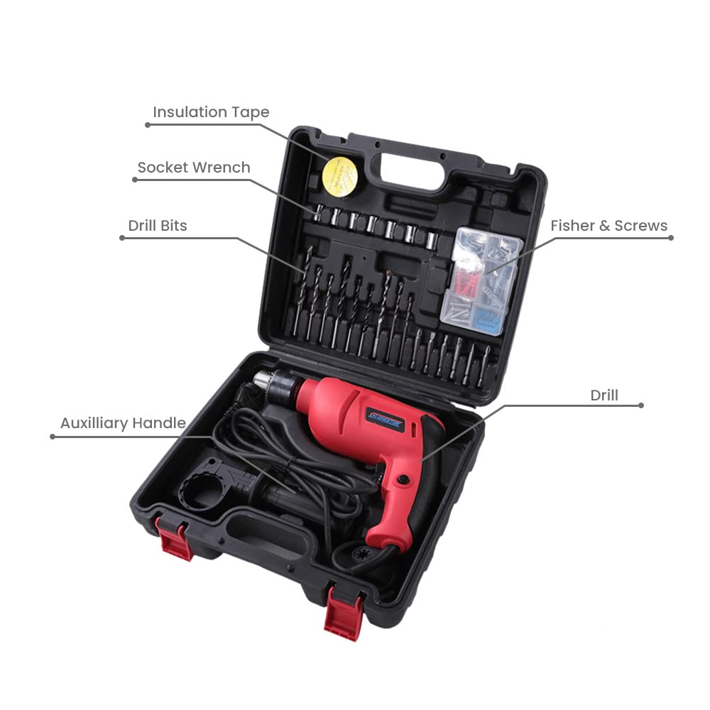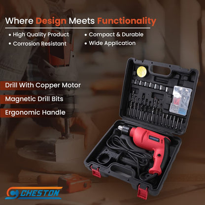 Experience unmatched power and versatility with the Cheston 13mm Drill Kit, meticulously designed for both DIY enthusiasts and professional contractors. This all-in-one solution is crafted to handle a wide array of drilling tasks with remarkable ease and efficiency.