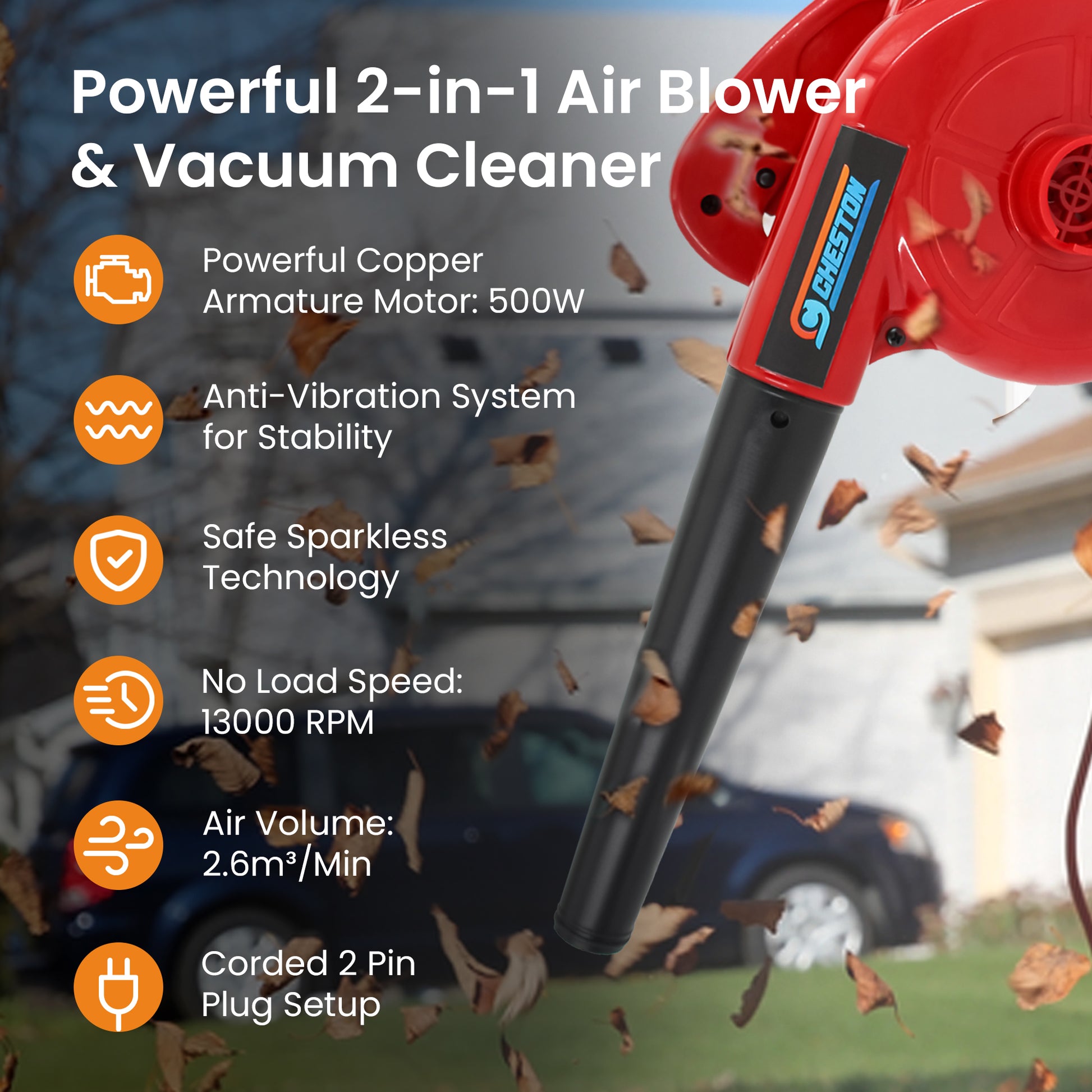 Cheston Air Blower - 550W, 13000 RPM | 1 Year Warranty | Red