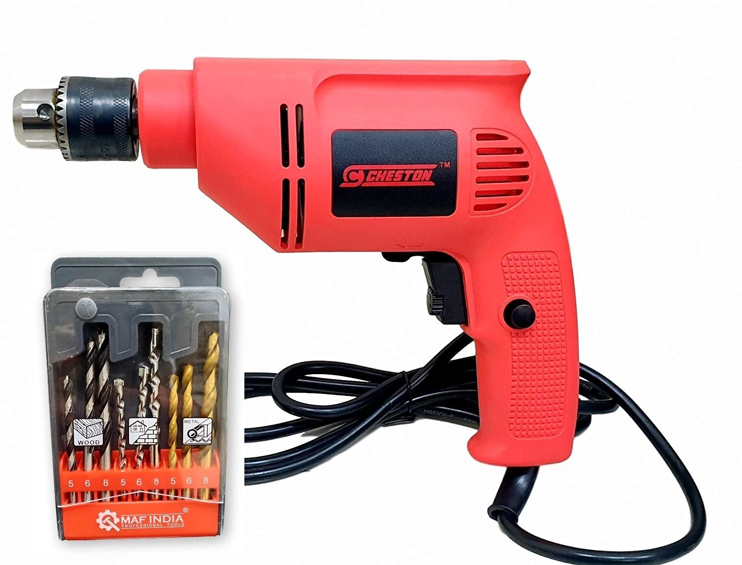 Cheston Drill Machine (6104.3WWM 9Pcs,Bit) Chuck capacity : 10 mm || Speed : 0-2600 rpm || Wattage: 400 Watts