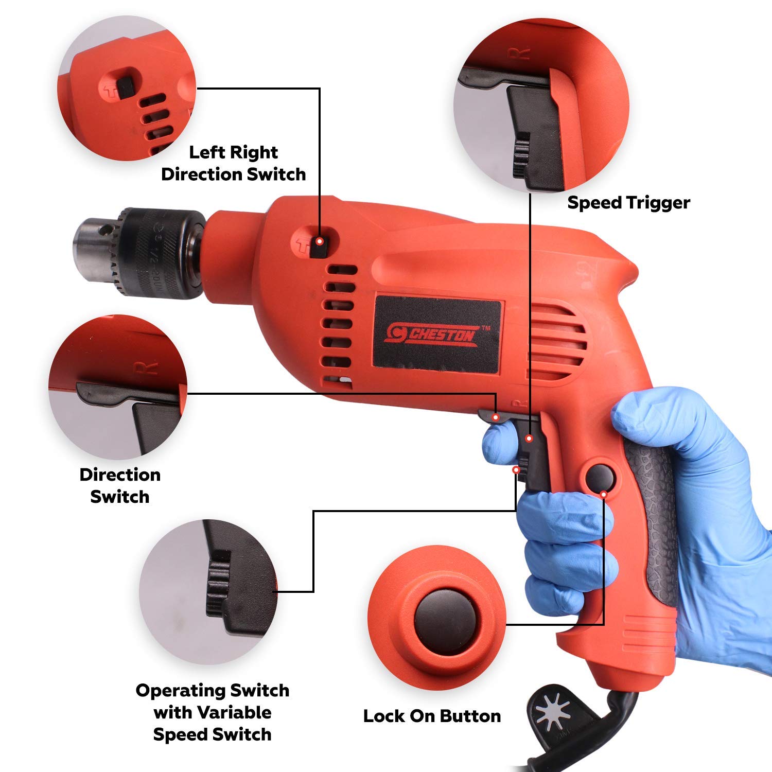 Cheston Impact Drill Machine 13mm Chuck with Reversible and Variable Speed Screwdriver and Hammer For Home & Professional