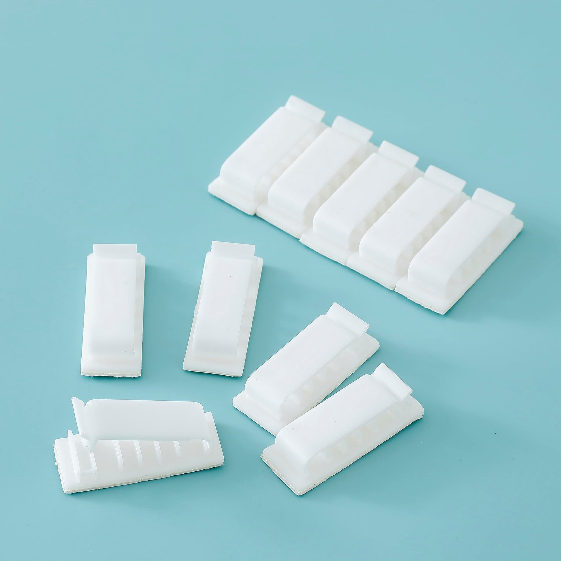 Introducing the Cheston Cable Organizer Kit by Cheston, your ultimate solution for wire management. This kit includes 10 self-adhesive cable management clips, making it perfect for organizing wires, charging cables, and mouse cords. Designed to keep your setup neat, this white plastic kit is easy to install and ideal for both home and office environments.