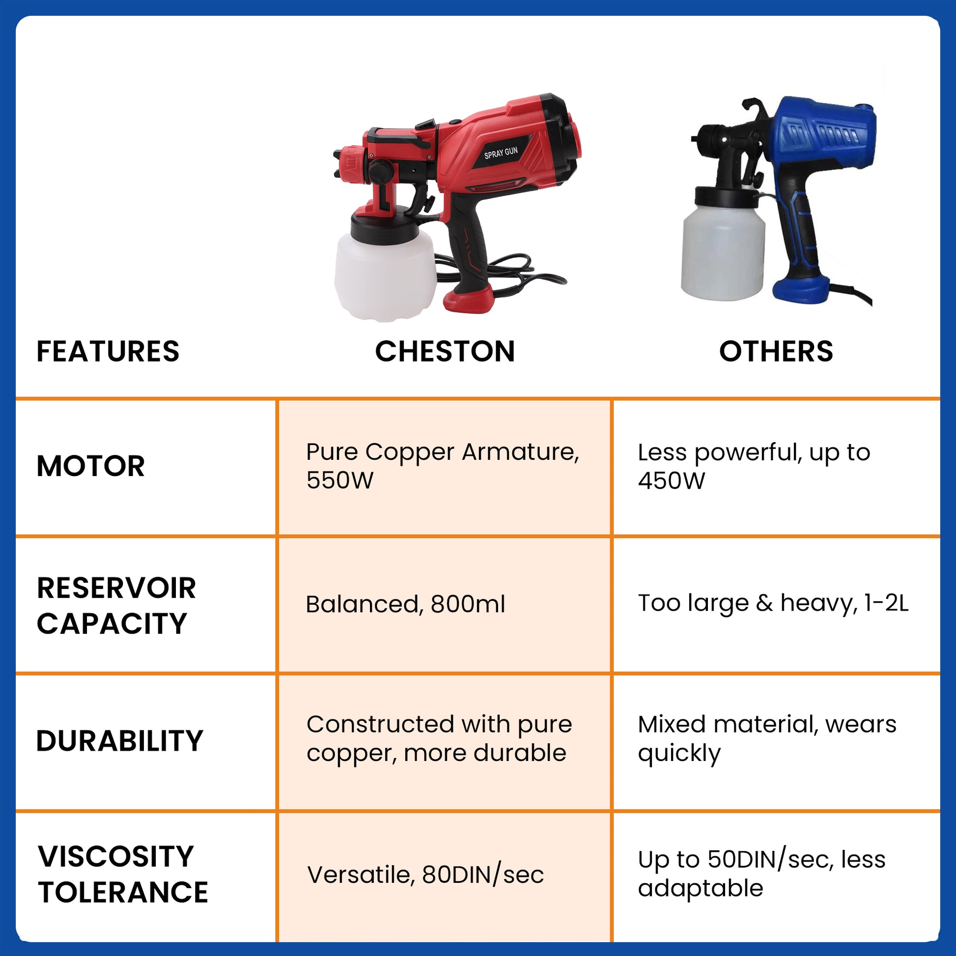 Cheston Paint Spray Machine 550W | Spray Gun for Painting- 800ML Reservoir | Pure Copper Armature | Home Improvement | Spray Paint Kit- Nozzle Included | 1.2L Capacity - White Pink