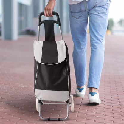 Shopping Trolley Bag with 2 Wheels | Foldabe and Collapsible | Grocery Bag for Fruits and Vegetables | Removable Luggaage Bag with 38 litres Capacity (Black & White)