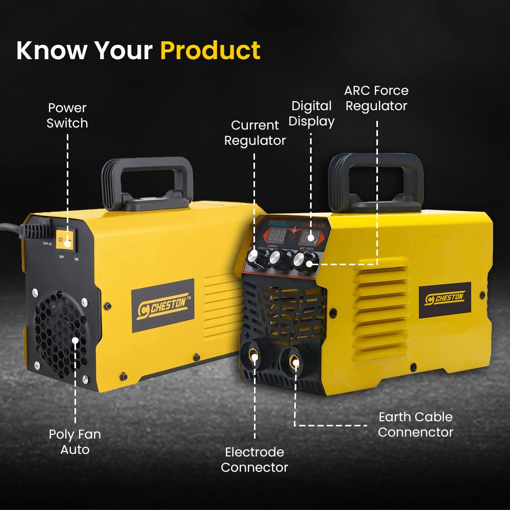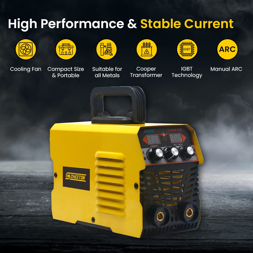 Introducing the Cheston 238A Welding Machine, your ultimate solution for robust welding needs. This portable welding machine has a remarkable current capacity of 6.3KVA, backed by IGBT technology for efficient performance. Ideal for home use and small workshops, the Cheston Welding Machine comes in a vibrant yellow color and is designed for both ease of use and reliability.