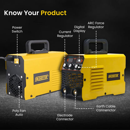 • QUALITY & EASE OF USE: Celebrated for its user-friendly design, featuring a digital display, a manual arc, and current regulator to cater to both beginners and experienced welders.