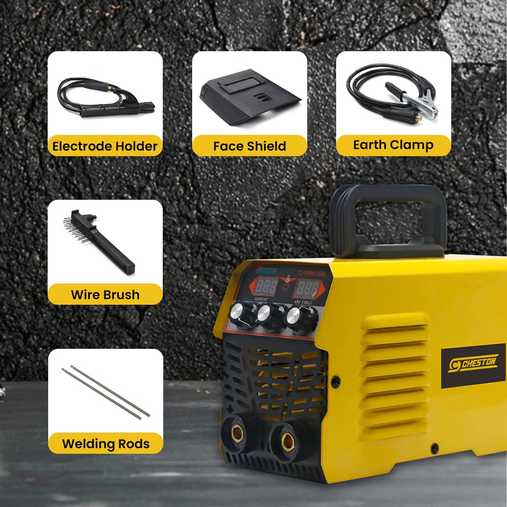 Cheston Welding Machine 238 Amp Single Phase | Gasless Mig Welding Machine for Home Use | IGBT Technology Anti Stick Hot Start | Arc Welding Tools Included | Small Welding Machine - 238A