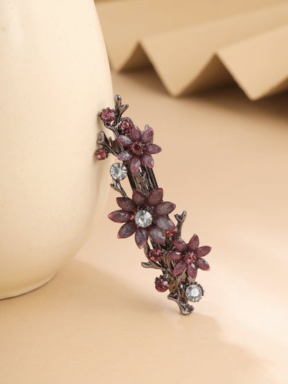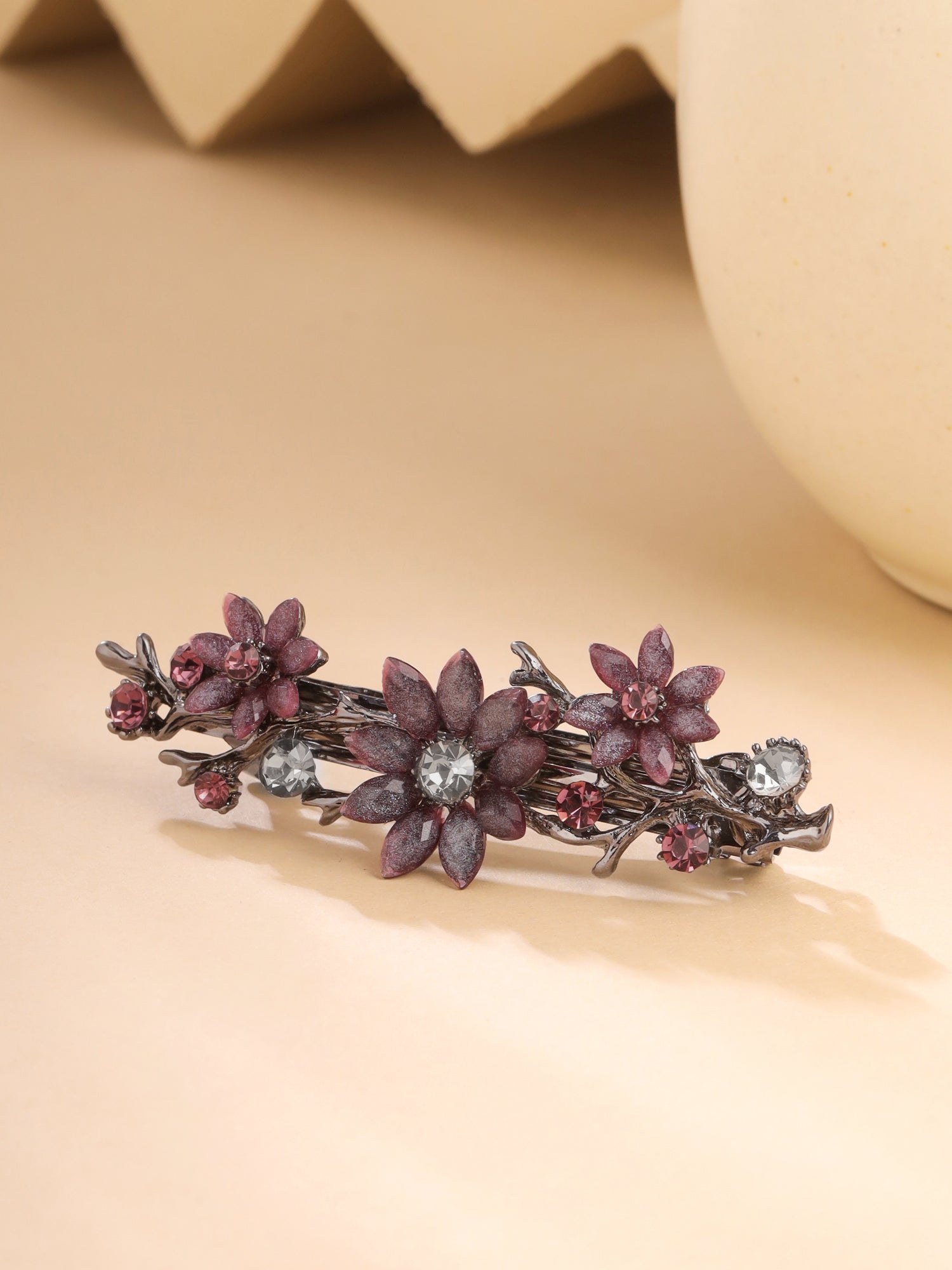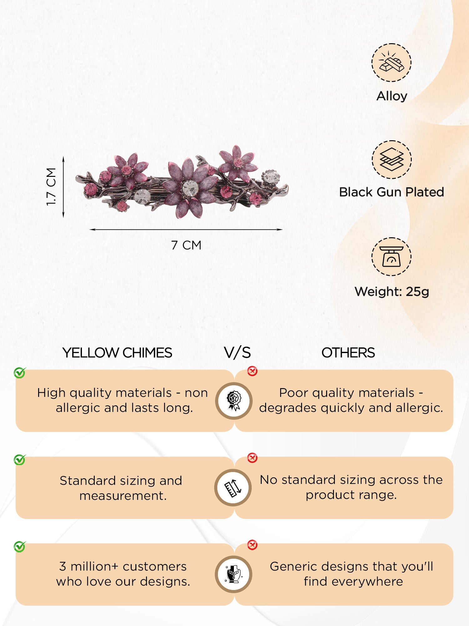 Yellow Chimes Hair Clips for Women Girls Barrette Hair Clips for Women Hair Accessories for Women Floral Clips for Women Purple Crystal French Barrette Hair Clips for Women and Girls Gift For Women & Girls