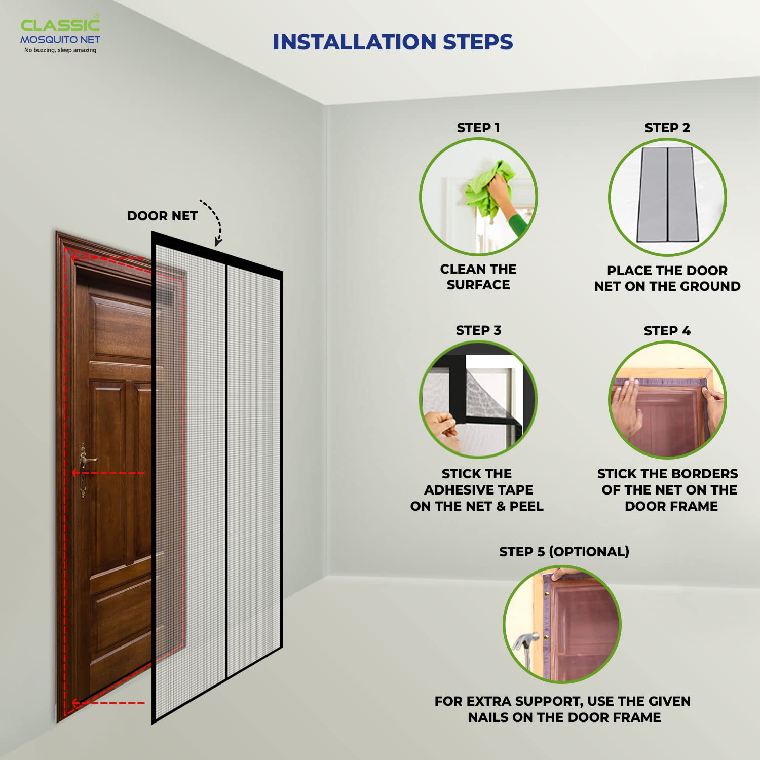 - Easy Installation: No tools are required for setup; simply follow the instructions to attach the screen mesh securely to your door frame.