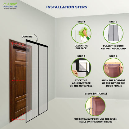Introducing the Classic Mosquito Net for Door by Classic Mosquito Net, a perfect solution for keeping your home bug-free while allowing fresh air to circulate. Measuring 195X110 cm, this polyester magnetic curtain features a self-sealing design that ensures hands-free entry and exit for everyone, including your pets. With powerful magnets strategically lined along the middle seam, it closes seamlessly behind you, preventing any unwanted insects from entering your home.