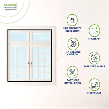 Introducing the Classic Mosquito Net for Windows by Classic Mosquito Net, designed specifically for optimal insect protection while letting in fresh air. This premium net boasts a size of 100X110cm and is made of high-quality 120 GSM fiberglass, offering durability and lightweight handling. The pack includes pre-stitched nets along with self-adhesive hook tape and detailed installation instructions to make setup a breeze.