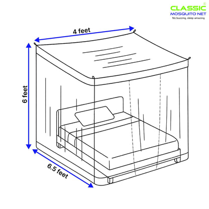 Introducing the Classic Mosquito Net for King Size Bed by Classic Mosquito Net, your ultimate protection against pesky insects. This mosquito net measures 6 x 6.5 ft, crafted from durable polyester mesh. The unique double zipper design allows for easy entry and exit, ensuring an undisturbed night's sleep. Its foldable and lightweight construction makes it ideal for home use and travel, ensuring safety and comfort wherever you go.