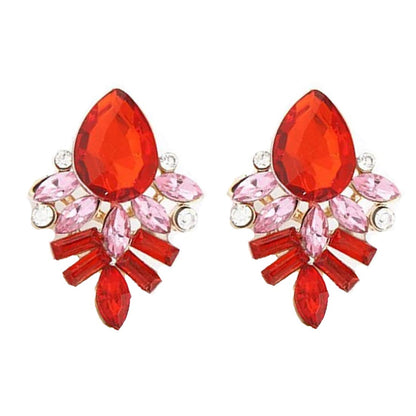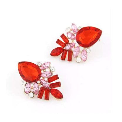 Classic Sparkling Leaf's Crystal Stud Earrings | Gold Plated | Party & Daily Wear | Red & Pink