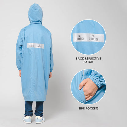 Introducing the Cloud Chaser Series Kids Raincoat by Clownfish, your ultimate solution for keeping your kids dry on rainy days. This stylish raincoat is made from high-quality waterproof polyester, ensuring durability and comfort. Designed for kids aged 9-10 years, it features a length of 36 inches and a reversible design, allowing for versatile styling. The raincoat comes with a storage pouch, making it easy to carry wherever your adventures take you.