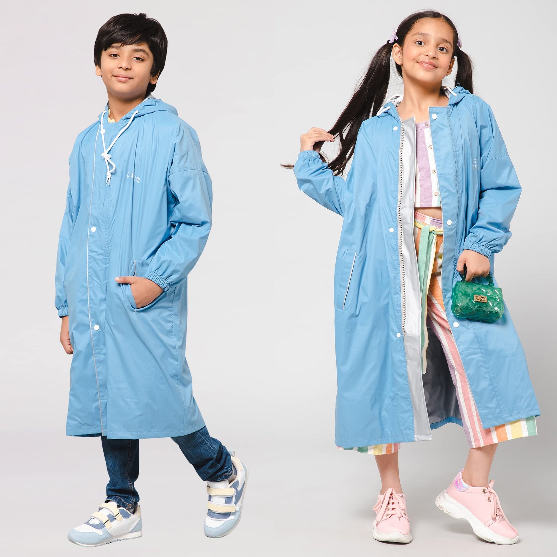 Cloud Chaser Series: Kids Skyblue Waterproof Raincoat | 36 inch | Reversible with Hood