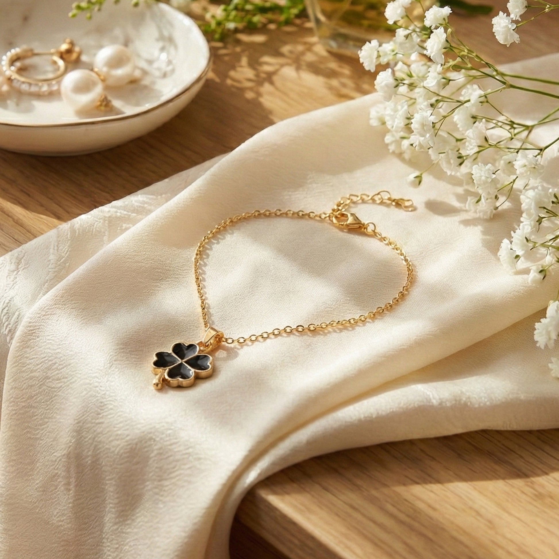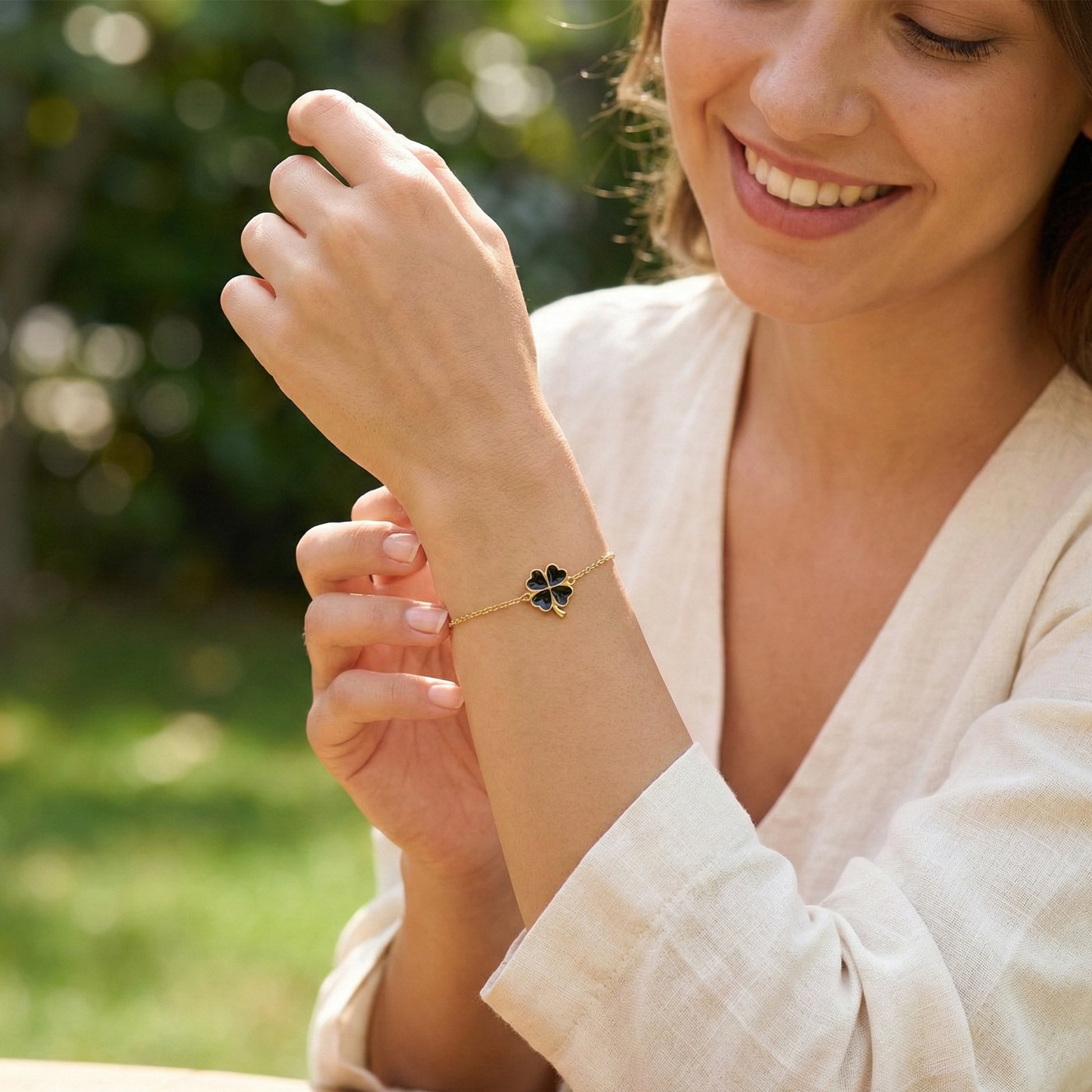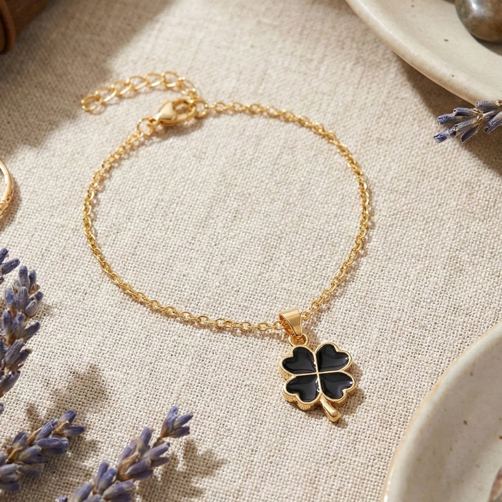 • FASHIONABLE DESIGN: Minimal gold plated bracelet featuring a sleek black clover charm for a clean and elegant everyday look.