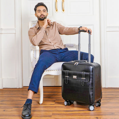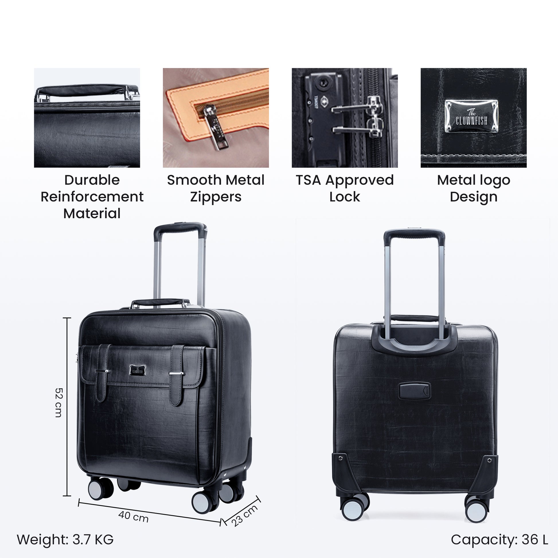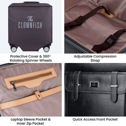 THE CLOWNFISH Luxury 22 Inch Unisex Synthetic Softsided Spinner Travel Suitcase Business Luggage Briefcase And Laptop Roller Case - 801(Black)