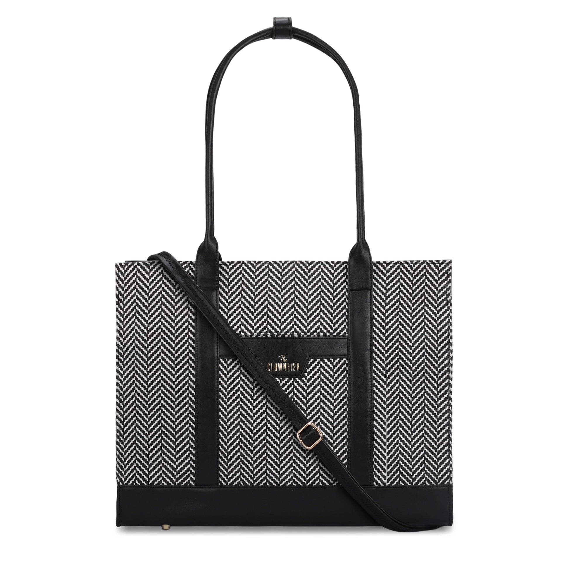 Clownfish Women's Laptop Handbag: Chic Black & White Tote | 17L | 15.6" Laptop Sleeve
