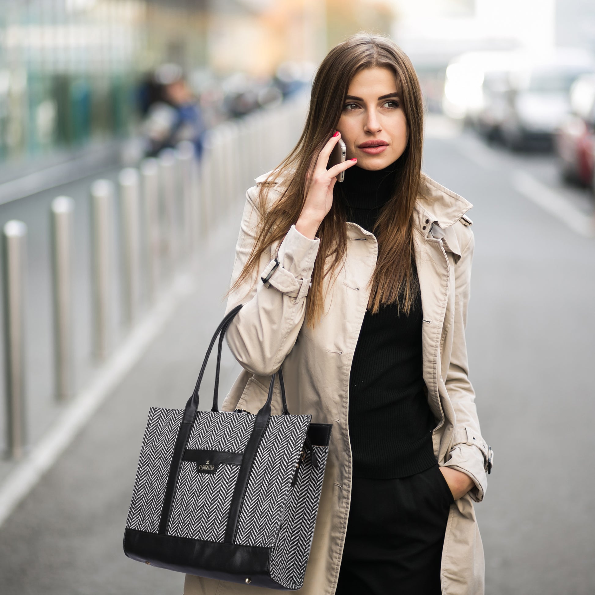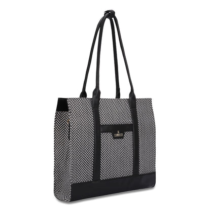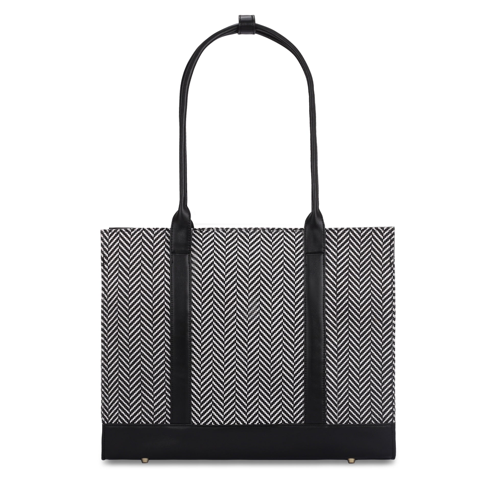 Women's Laptop Handbag: Chic Black & White Tote | 17L | 15.6" Laptop Sleeve