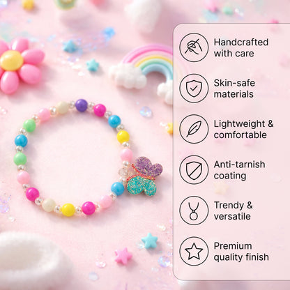 Introducing the 5 Pcs Multicolor Beaded Bracelets by Yellow Chimes, a delightful set designed specifically for girls and kids. This charming combo features five beautifully crafted bracelets, each showcasing a vibrant mix of colors that perfectly complement any outfit. Made from lightweight, non-allergenic beads, these bracelets ensure safety and comfort for sensitive skin—ideal for school, playdates, or family gatherings. Each bracelet is stretchable, fitting comfortably around various wrist sizes, overcoming size concerns often encountered with accessories. Elegantly packaged, these bracelets arrive in a distinctive Yellow Chimes box, ensuring safe delivery and making them a wonderful gift option for birthdays and special occasions.