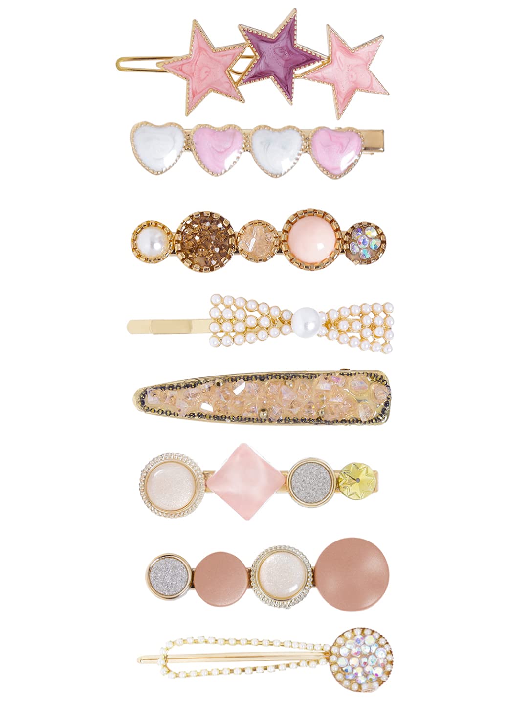 • VERSATILE STYLES: This set includes 8 different hair clips, ensuring that you have the right accessory for every hairstyle.
