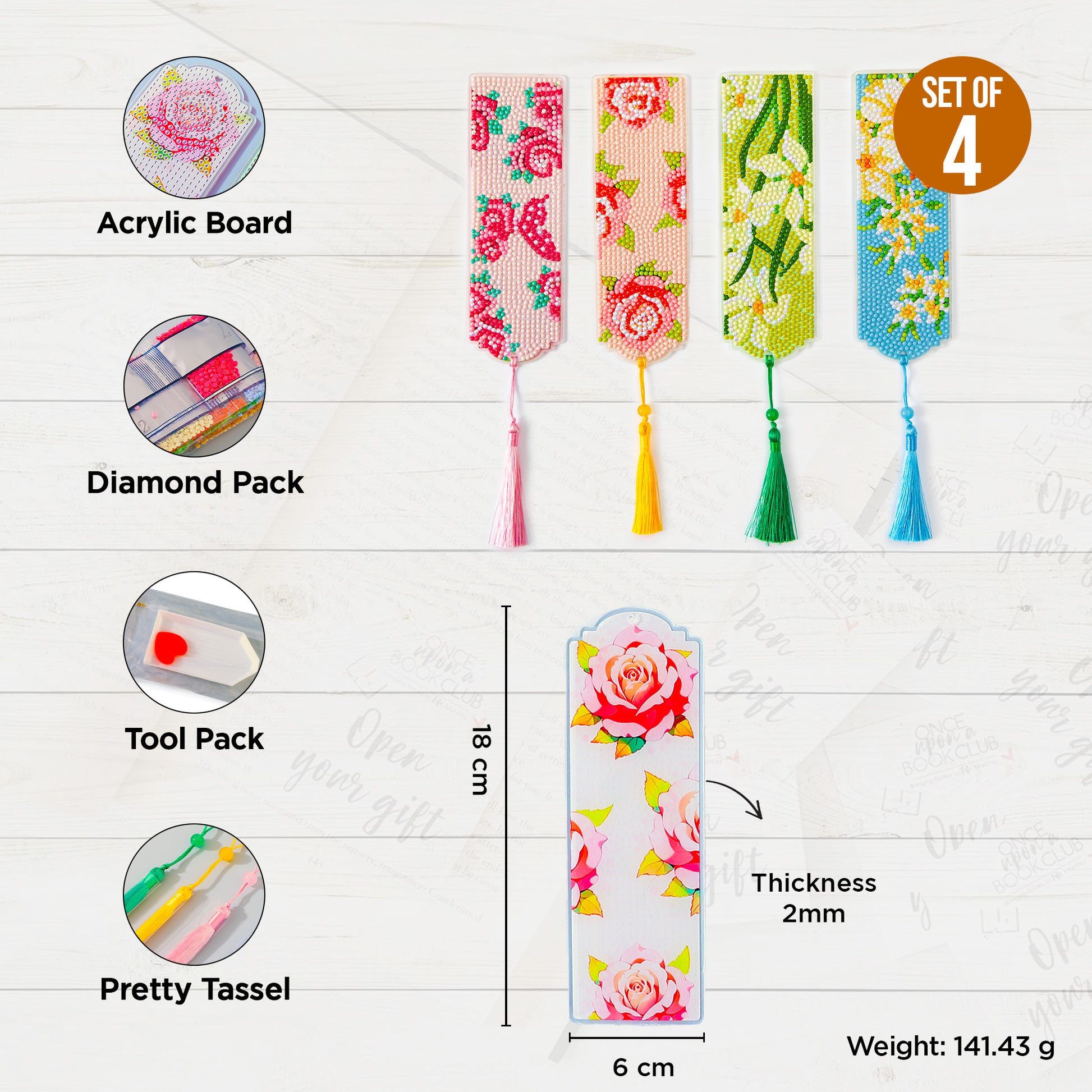 UMAI Acrylic DIY Bookmark Diamond Painting Kit for Kids | Bookmarks for Books Novels | Bookmark Gifts for Booklovers | Multicolor Set of 4