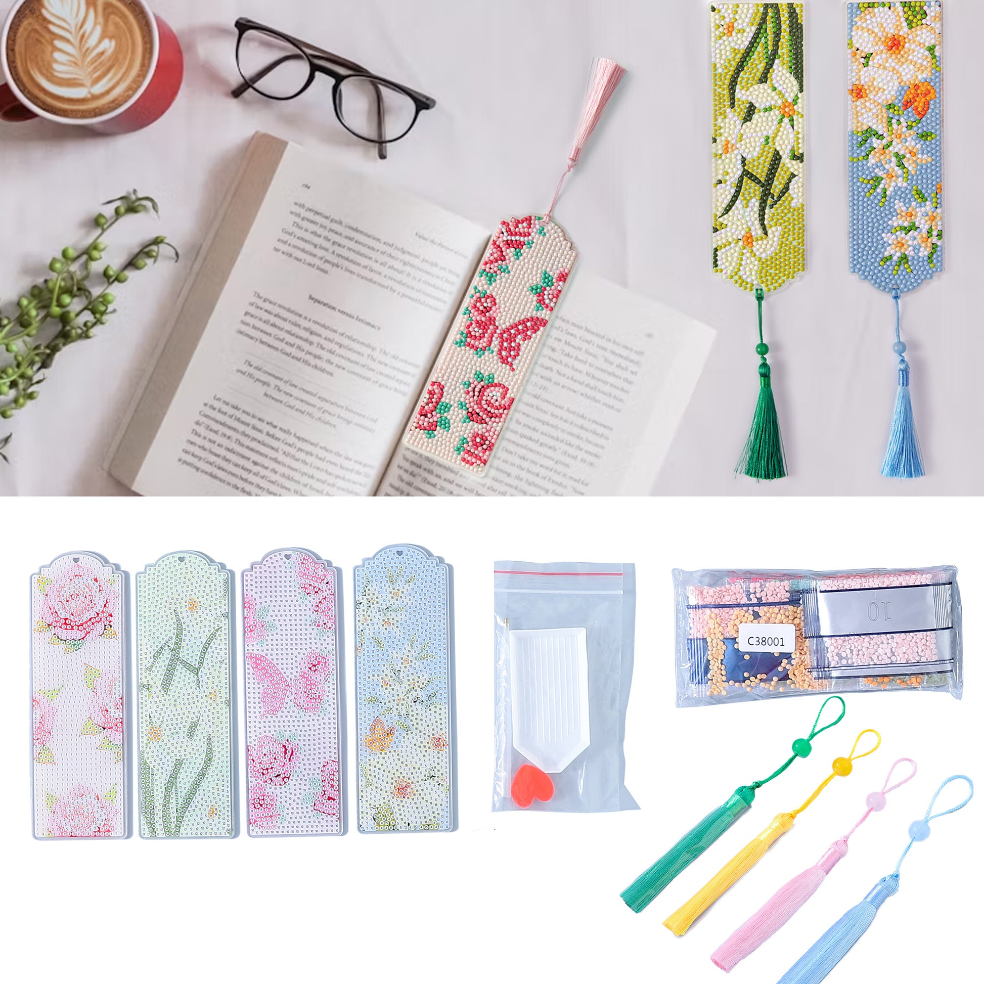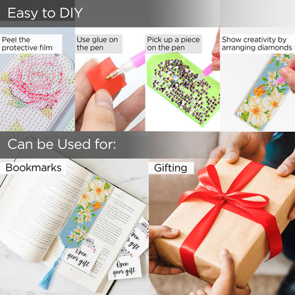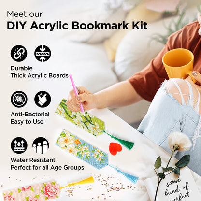 Acrylic DIY Bookmark Diamond Painting Kit for Kids | Bookmarks for Books Novels | Bookmark Gifts for Booklovers | Multicolor Set of 4