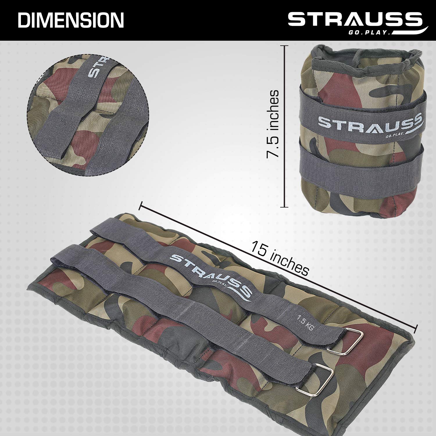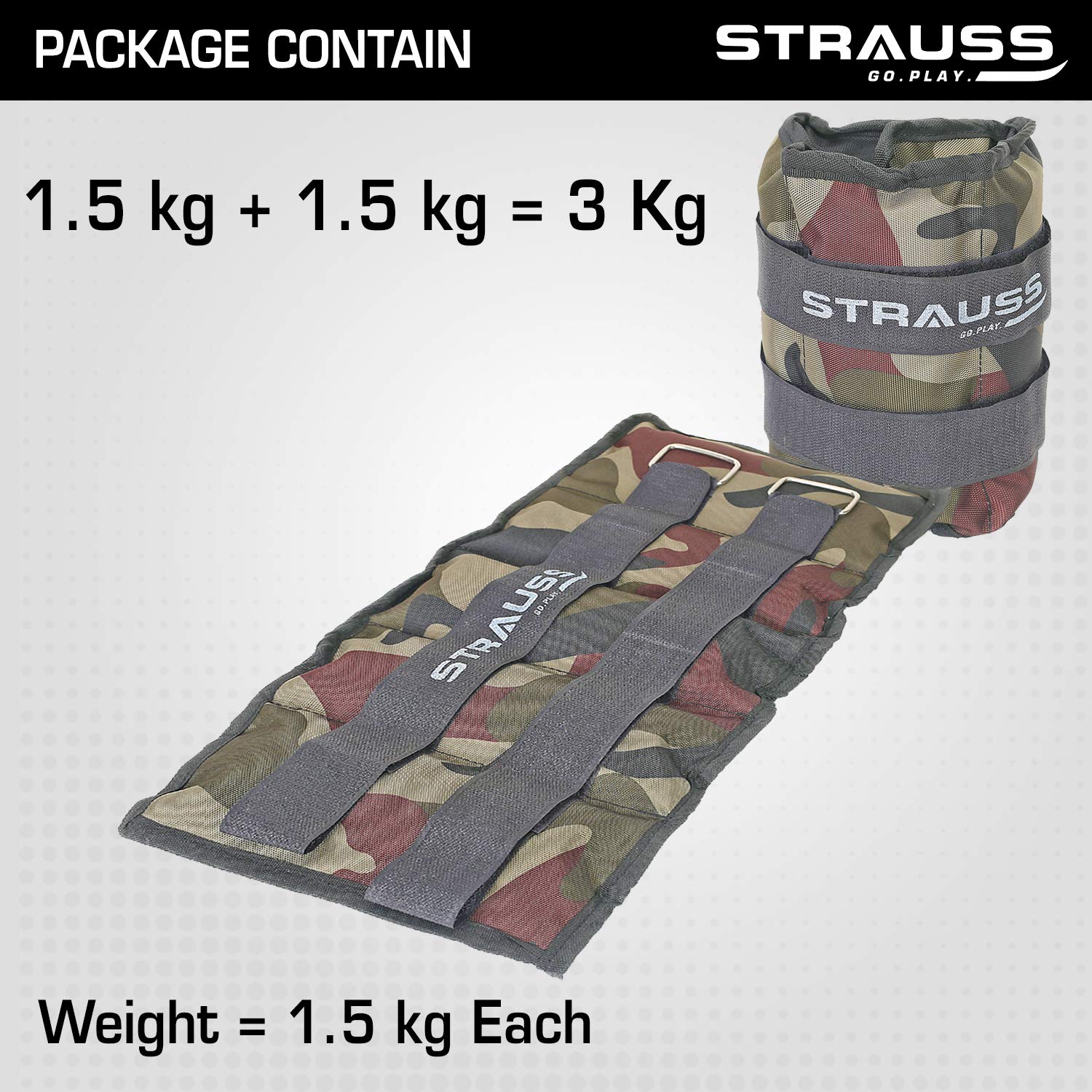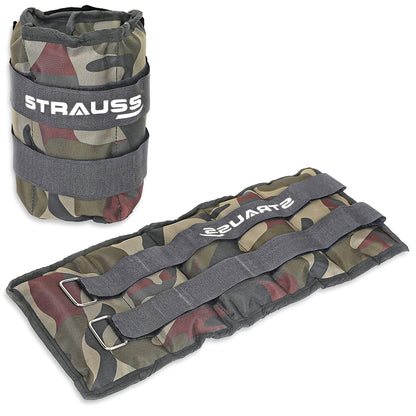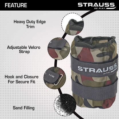 Strauss Adjustable Ankle/Wrist Weights 1.5 KG X 2 | Ideal for Walking, Running, Jogging, Cycling, Gym, Workout & Strength Training | Easy to Use on Ankle, Wrist, Leg, (Camouflage)
