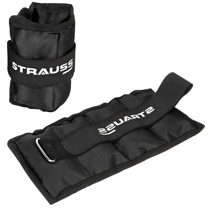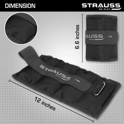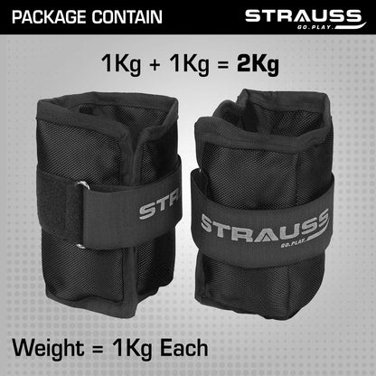 Strauss Adjustable Ankle/Wrist Weights 1 KG X 2 | Ideal for Walking, Running, Jogging, Cycling, Gym, Workout & Strength Training | Easy to Use on Ankle, Wrist, Leg, (Black)