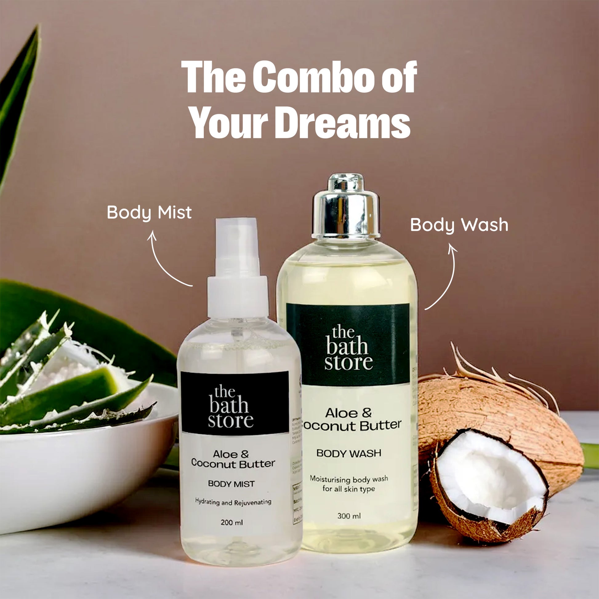 Combo: Aloe & Coconut Butter Body Wash & Mist Pack | Exfoliating | 2 Units | Refreshing Fragrance