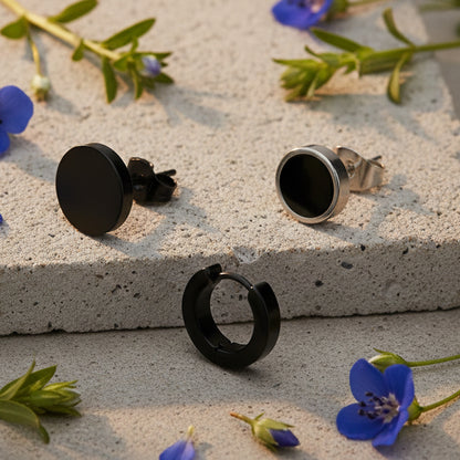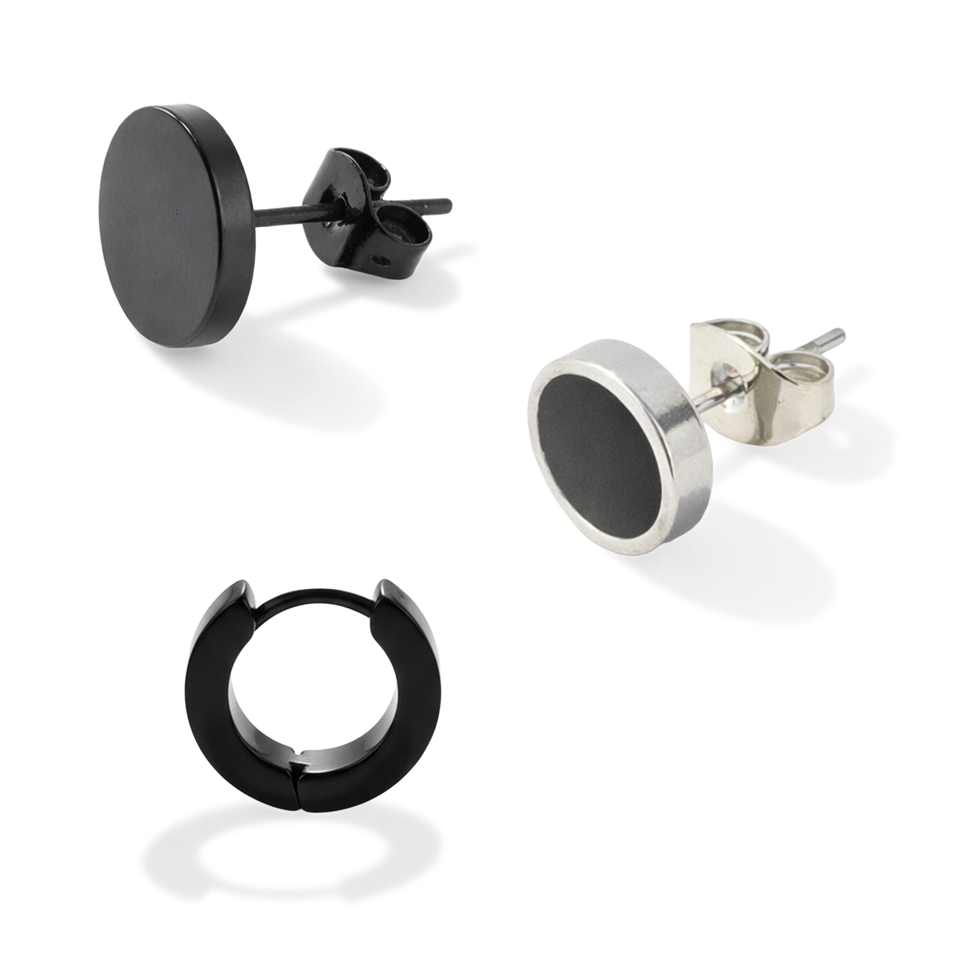 Combo: Black Rhodium-Plated Men’s Earrings | 0.8 cm | Gift Box