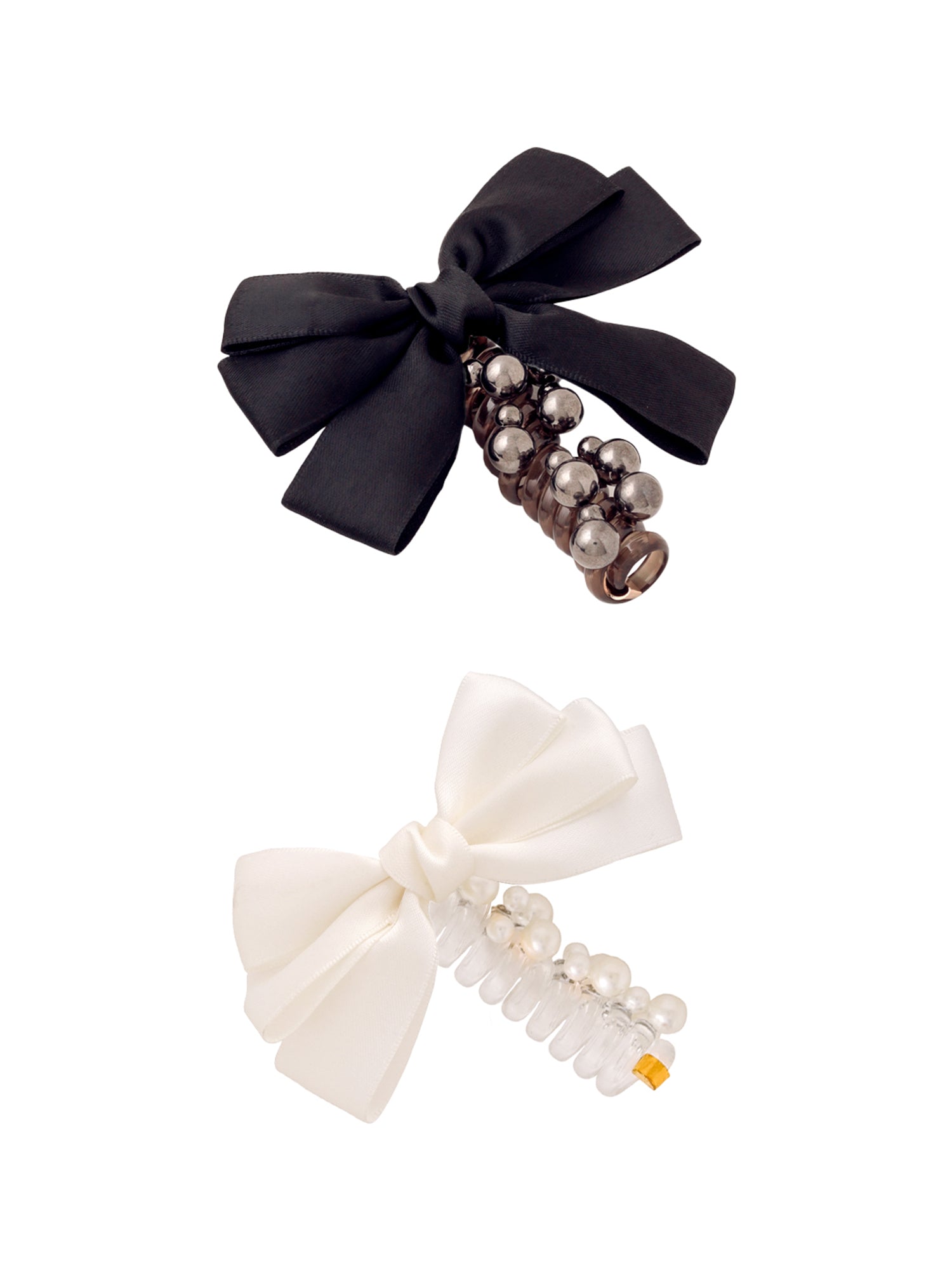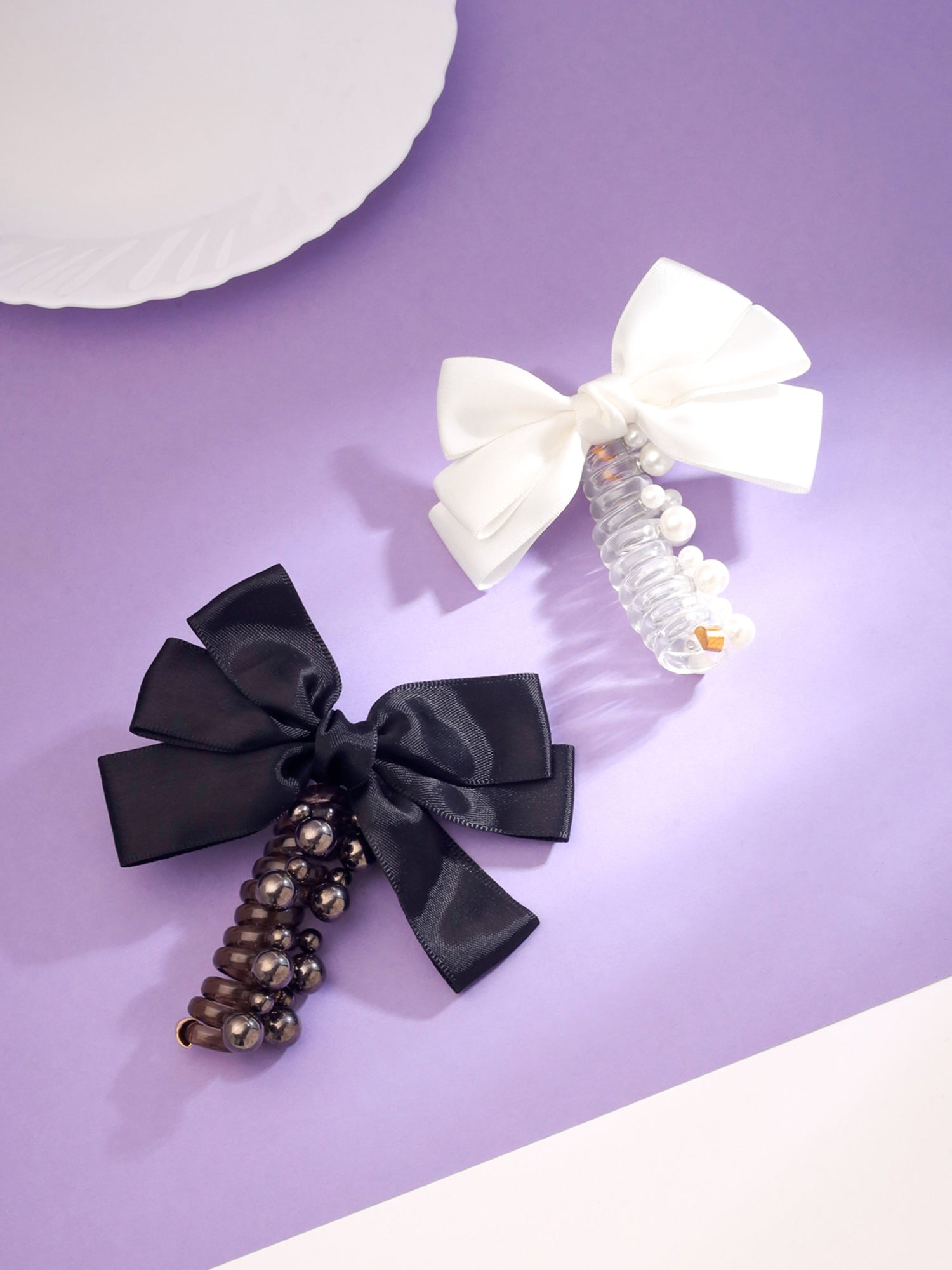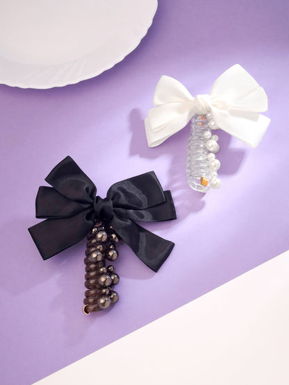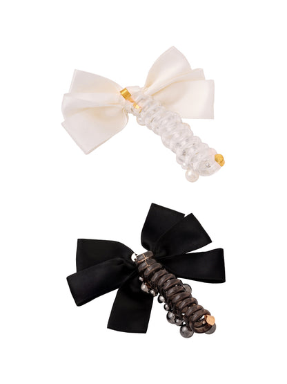 Combo: Bow Rubber Bands for Girls - Spiral Elastic | 2 Hair Ties | Black & White