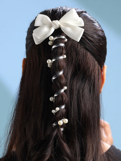 Introducing the Combo of 2 Bow Rubber Bands for Girls by Yellow Chimes, a perfect blend of style and functionality. These hair accessories are designed to enhance any hairstyle with their elegant black and white color scheme, providing a chic look while ensuring a secure hold. Crafted from durable fabric, these spiral elastic hair rubber bands offer high elasticity, making them suitable for various hair types.