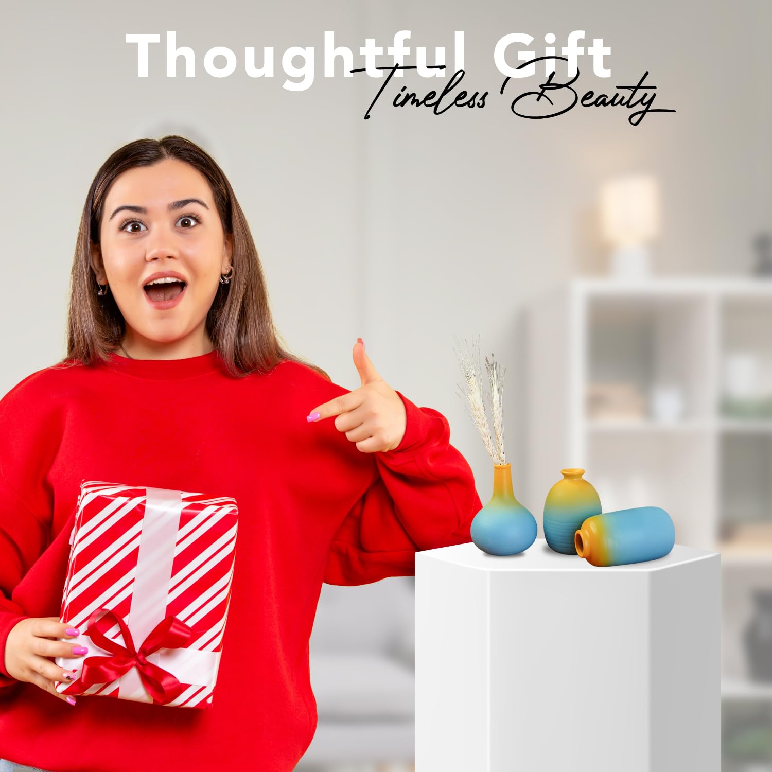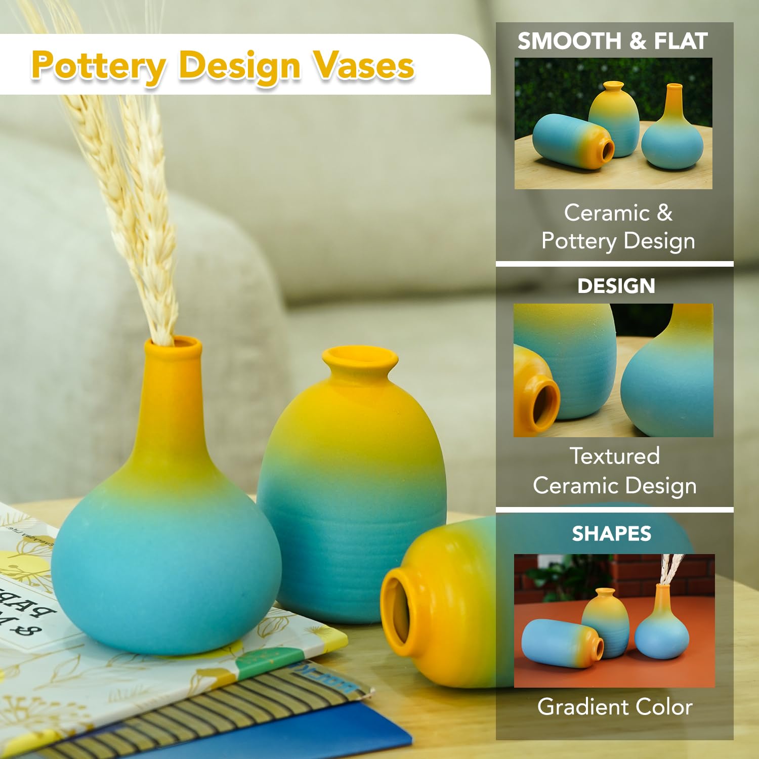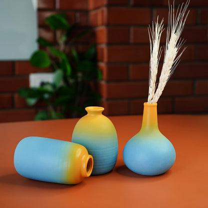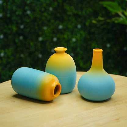 Combo: Set of 3 Blue Ceramic Bud Vases for Home Decor | Mini Design | Smooth Finish