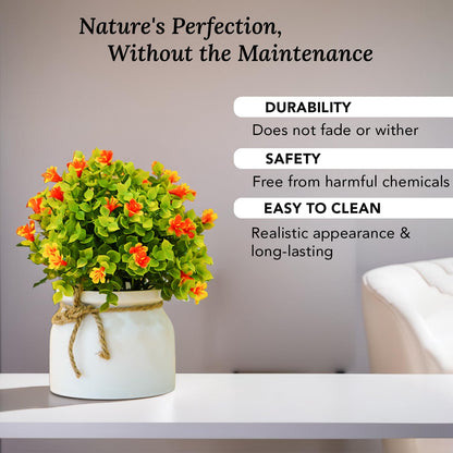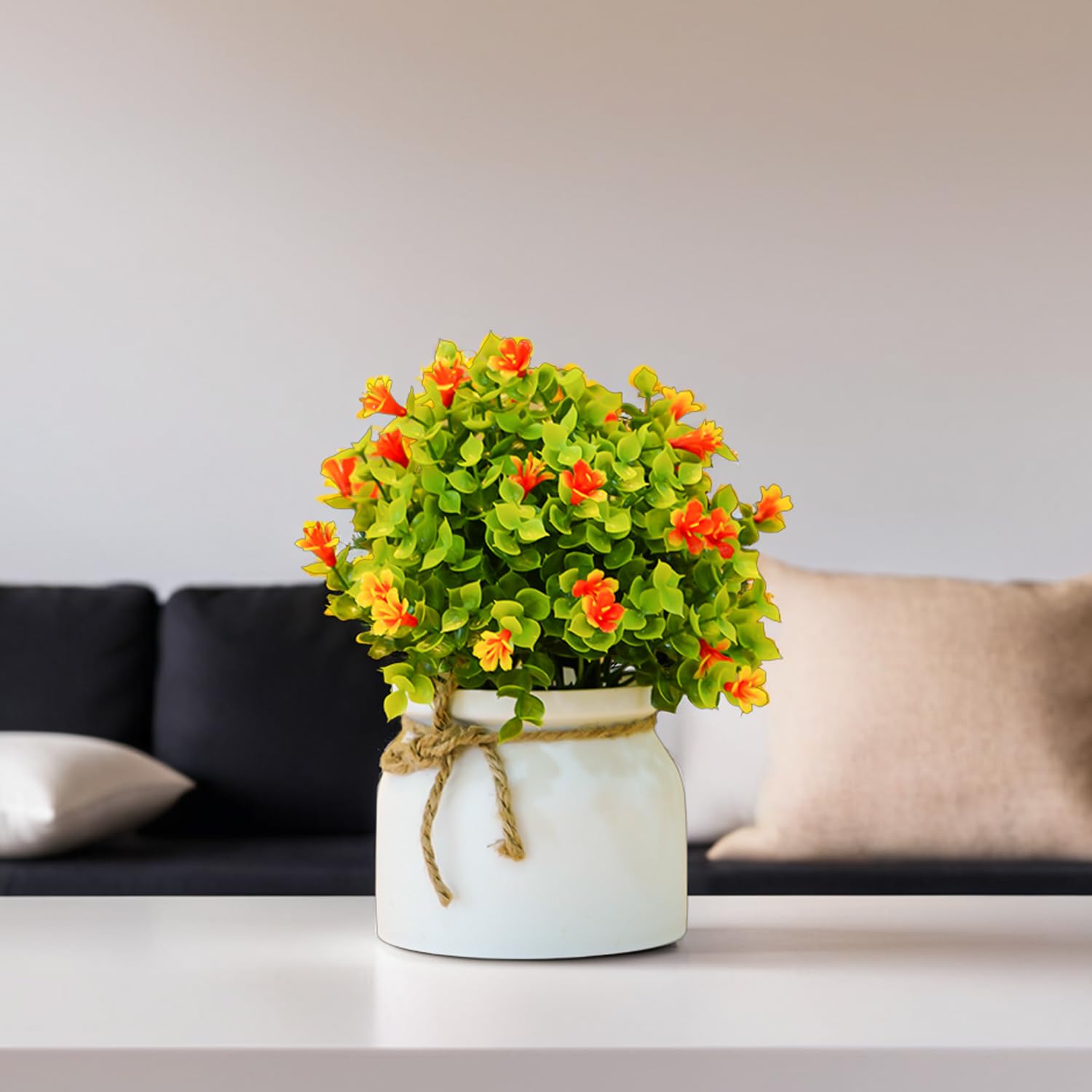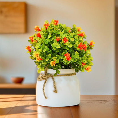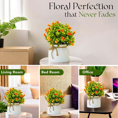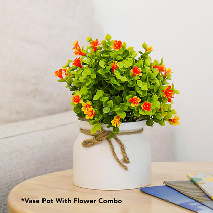 Orange Rose Flower Vase with Artificial Flowers Plant | Small Flower Pots with Artificial Flowers for Home Decor Centre Table Pots Showpiece Living Room Office Wedding Birthday & Gift