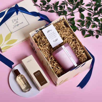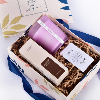 Combo: Divine Aroma Gift Box - Amber Perfume & Lavender Candle | 30ml & 250gm | Elegant Gift Set