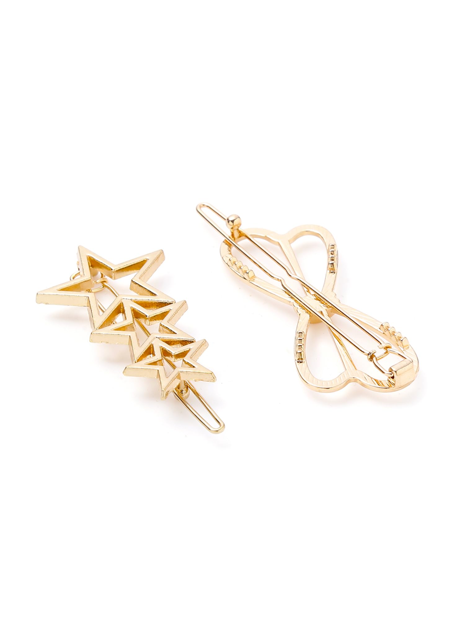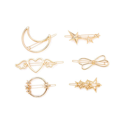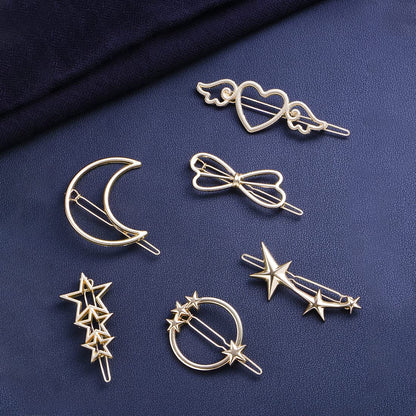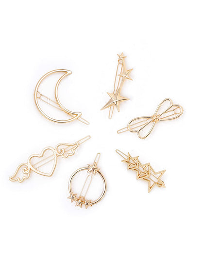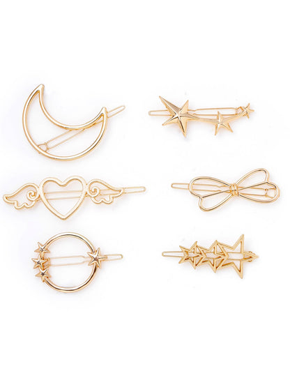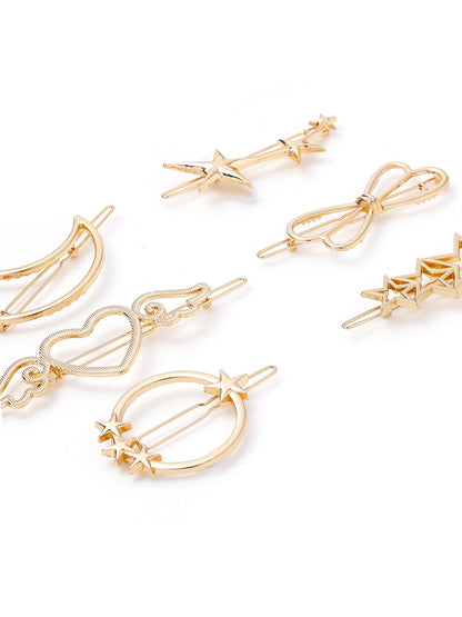 Combo: Golden Hair Clips for Women - Stylish Star & Bow Designs | 6 Pcs | All Hair Types
