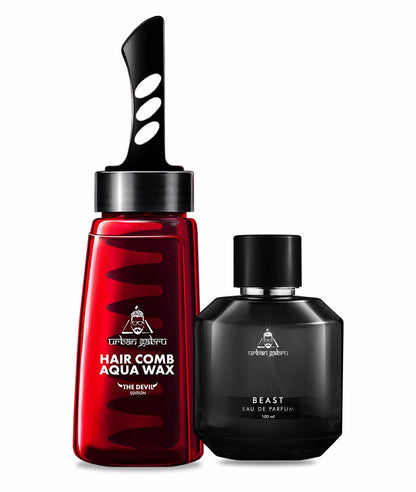 Urbangabru Hair Comb Aqua Wax (260 ML) & Beast Perfume For Men (100 ML) - Mens Grooming Combo Kit