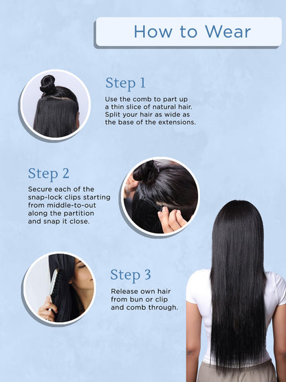 • EASY APPLICATION: Features sturdy, long-lasting clip-ins that allow for secure and effortless attachment and removal without damaging your natural hair.