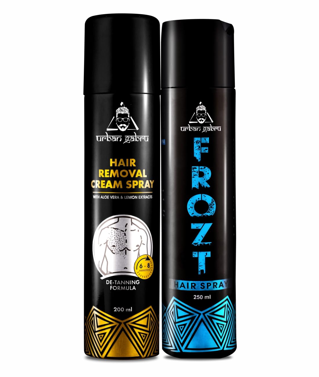 Introducing the Urbangabru Hair Removal Cream Spray - Lemon Extract 200 ML & Frozt Hair Spray 200 ML by Urban Gabru, your ultimate duo for grooming and styling. This combo includes a total of 200 ML of hair removal cream spray infused with refreshing lemon extract, designed to cater to your hair removal needs, while the frozt hair spray will keep your hairstyle in place. Perfect for anyone looking for effective grooming products!