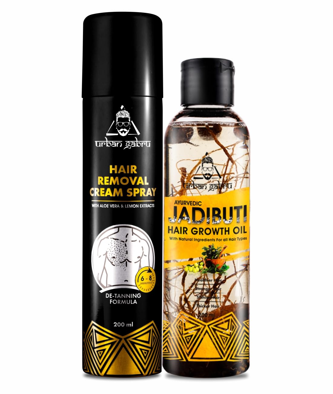 Urbangabru Hair Removal Cream Spray - Lemon Extract 200 ML & Jadibuti Hair Oil 200 ML