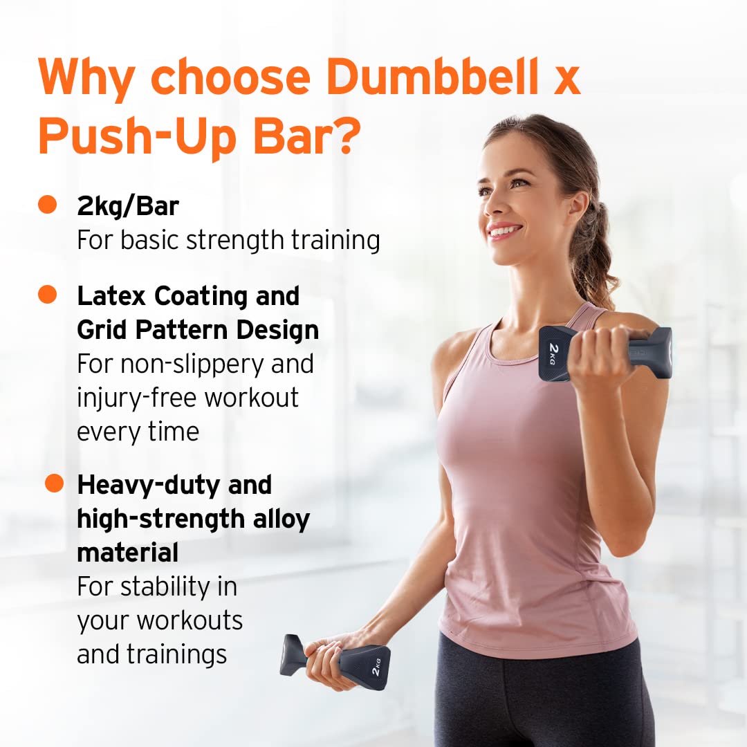 Iron Push Up Dumbbell Set -2Kg x 2 | 2 in 1 Weight Lifting + Push Up | Dumbbells Set for Home Gym | Home Gym Set | Fitness Dumbbell | Weights for Home Gym Accessories Men & Women | Black