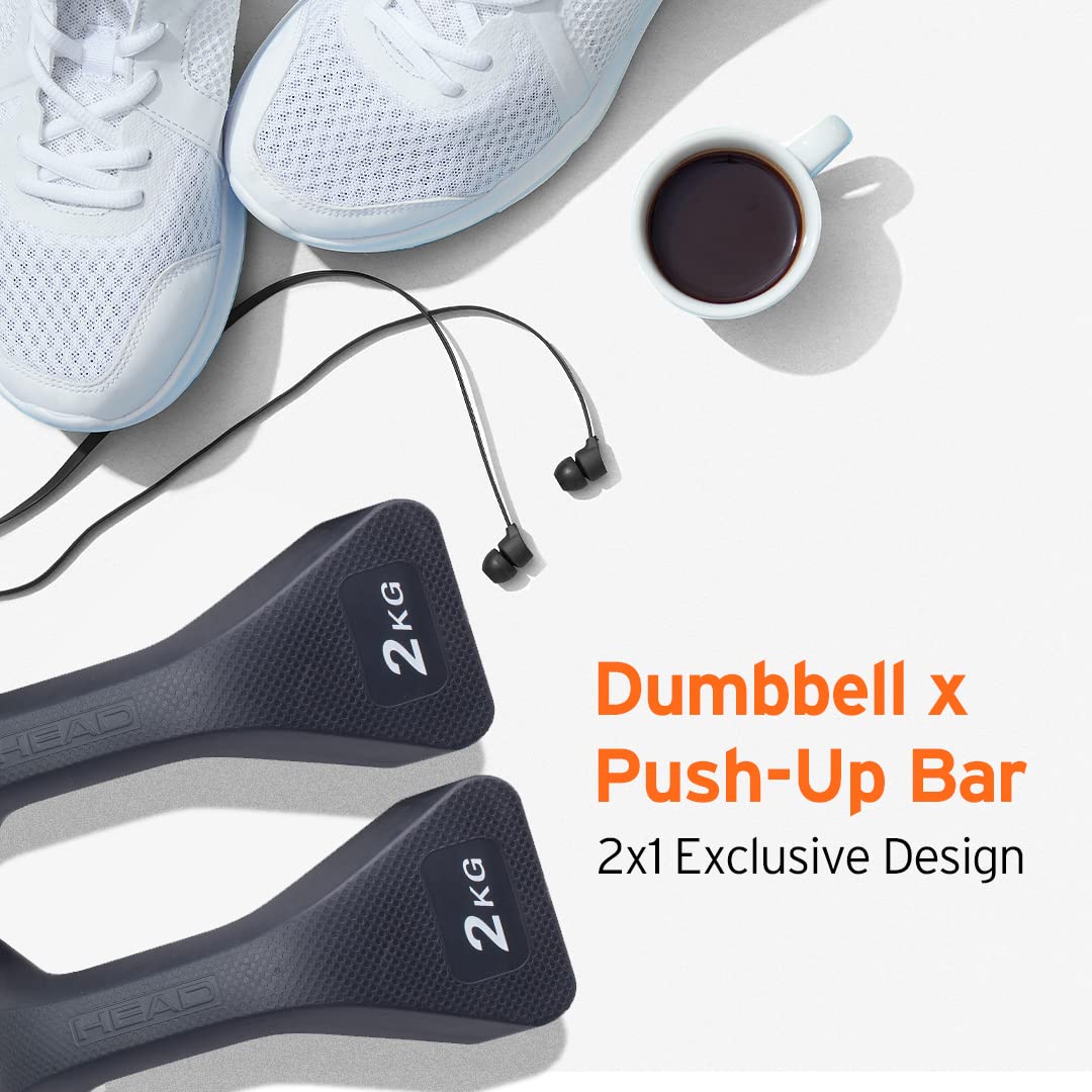 HEAD Iron Push Up Dumbbell Set -2Kg x 2 | 2 in 1 Weight Lifting + Push Up | Dumbbells Set for Home Gym | Home Gym Set | Fitness Dumbbell | Weights for Home Gym Accessories Men & Women | Black
