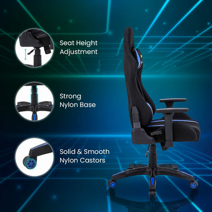 Combo: INTERCEPTOR Ergonomic Gaming Chair & Large Gaming Mat | Premium Fabric, Adjustable Pillow | 70 x 140 cm | Blue