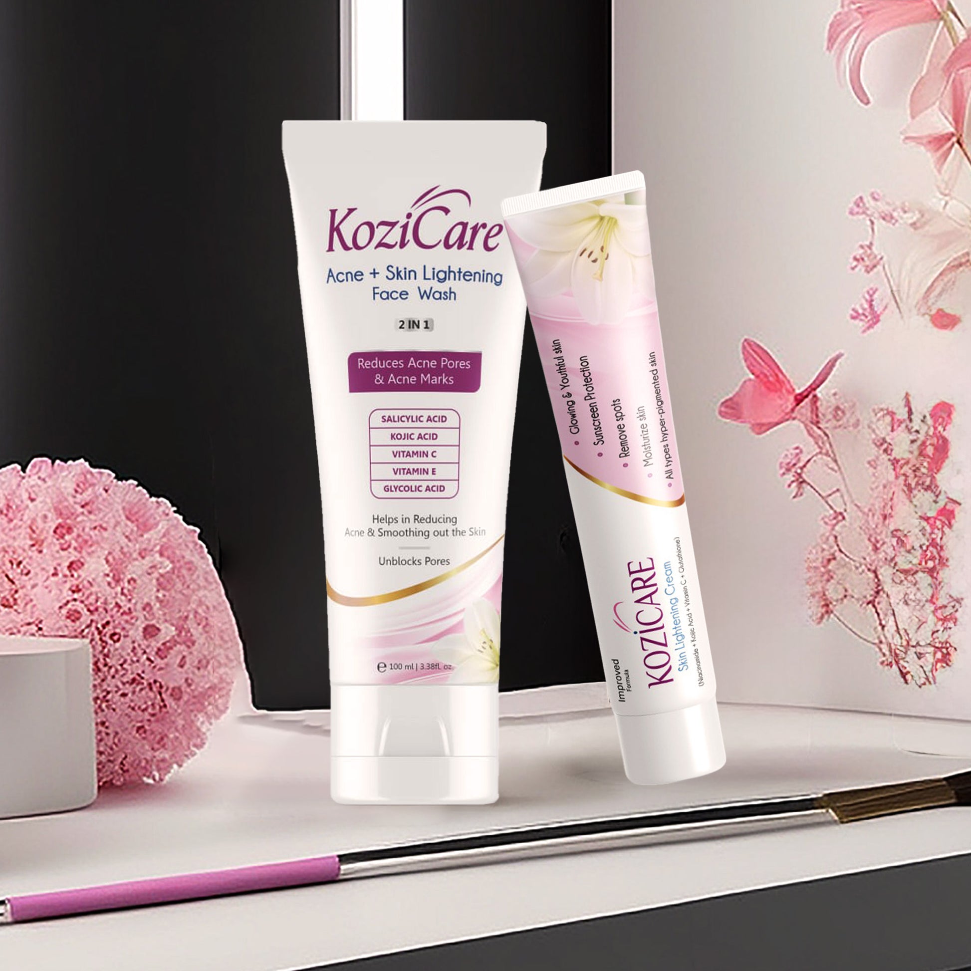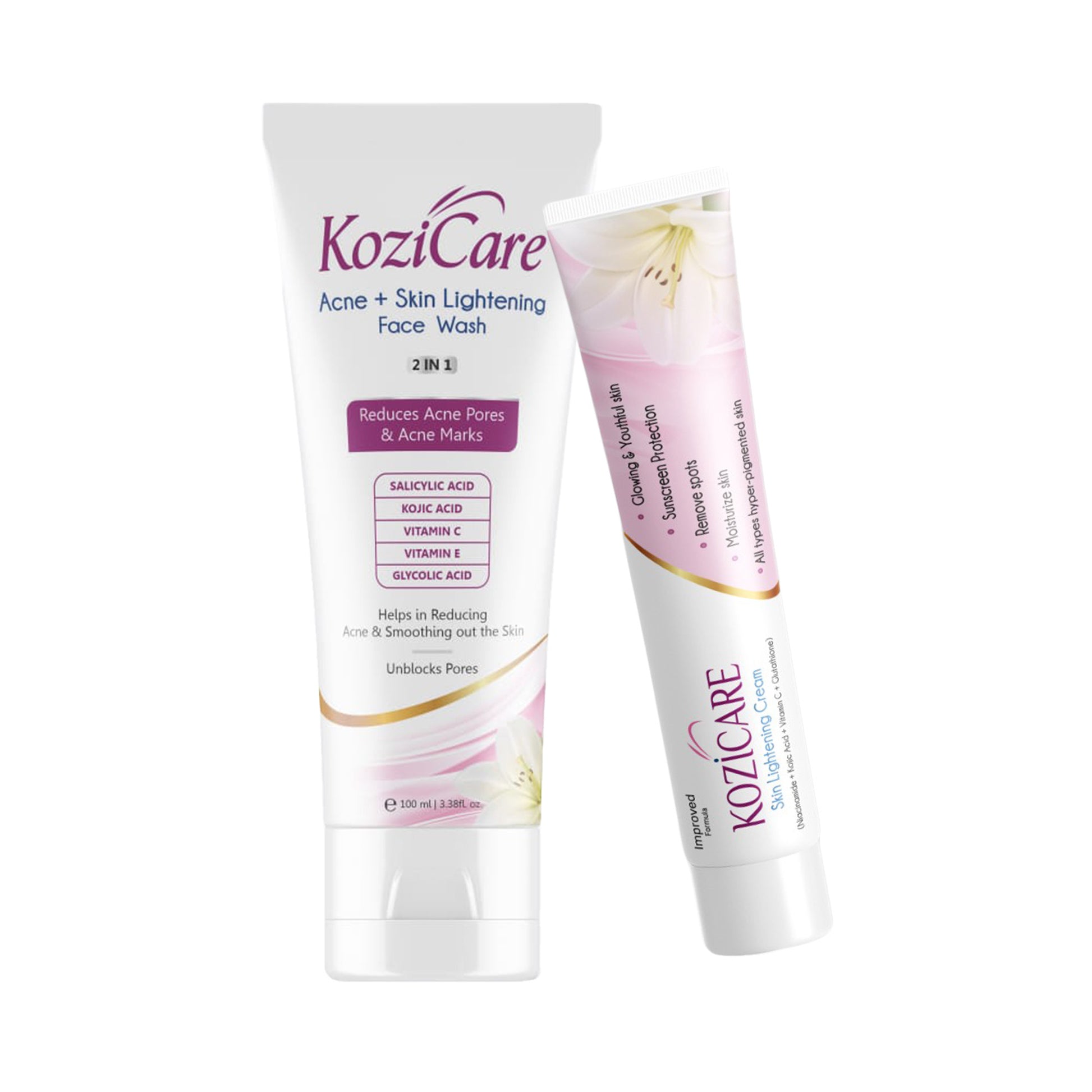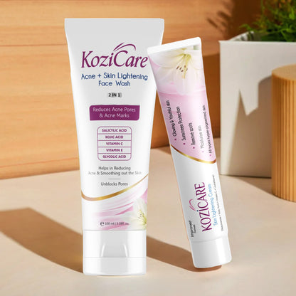 Acne + Skin Lightening Face Wash 2 in 1 Enriched with Kojic Acid, 2% Salicylic Acid, Vitamin C & E, Glycolic Acid | Helps in Reducing Acne & Smoothing Out the Skin For All Skin Types– 100ml
