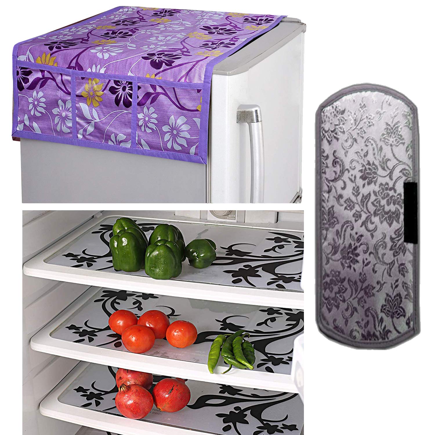 Kuber Industries PVC 3 Pieces Fridge Mats, 1 Piece Handle Cover and 1 Piece Fridge Top Cover (Purple)-CTKTC14572